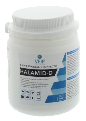 Halmid-D is een ontsmettingsmiddel tegen bacteriën en virussen in dierenverblijven/dierenhokken.