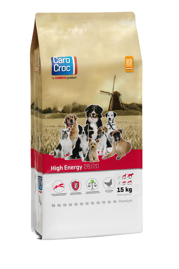 Voorkom tekorten en voer je hond tijdens deze periode CaroCroc High Energy.