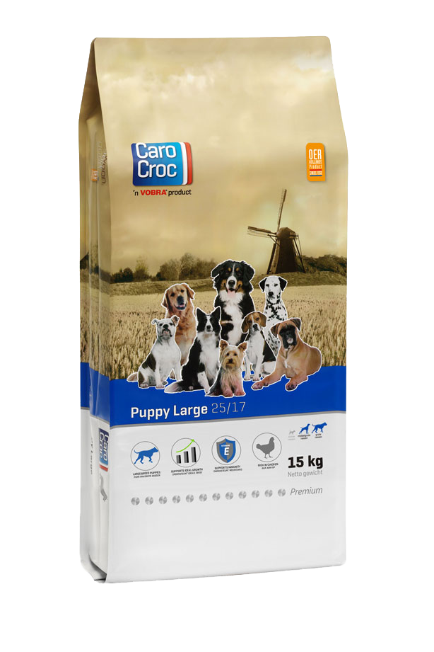 De Caro Croc puppy large is een hele goede hondenbrok voor puppys van een middelgrote en grote honden rassen.