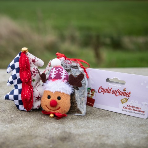 Cupid en Comet kerstsok gevuld met: