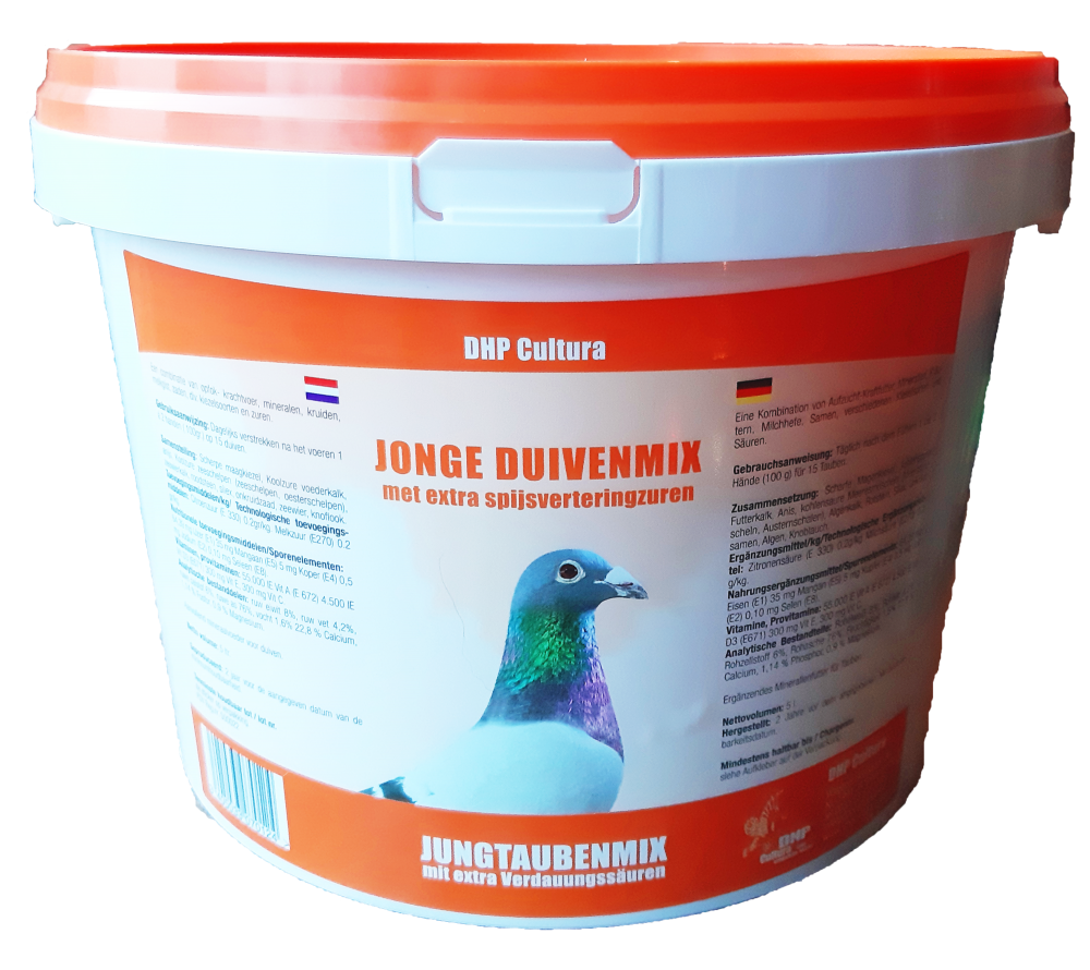 De jonge Duivenmix van DHP is een combinatie van grondstoffen waar jonge duiven in het eerste levensjaar zeer veel behoefte aan hebben.