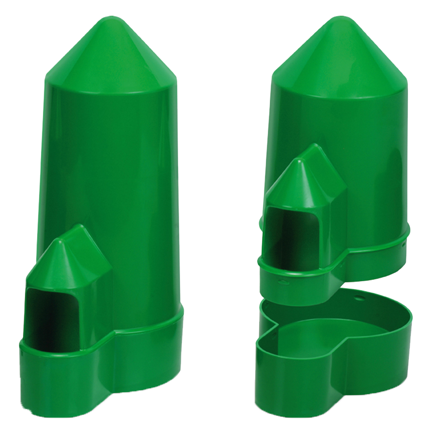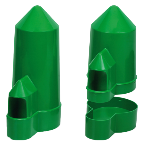 Stevig kunststof. Uit elkaar te halen om goed schoon te kunnen maken.