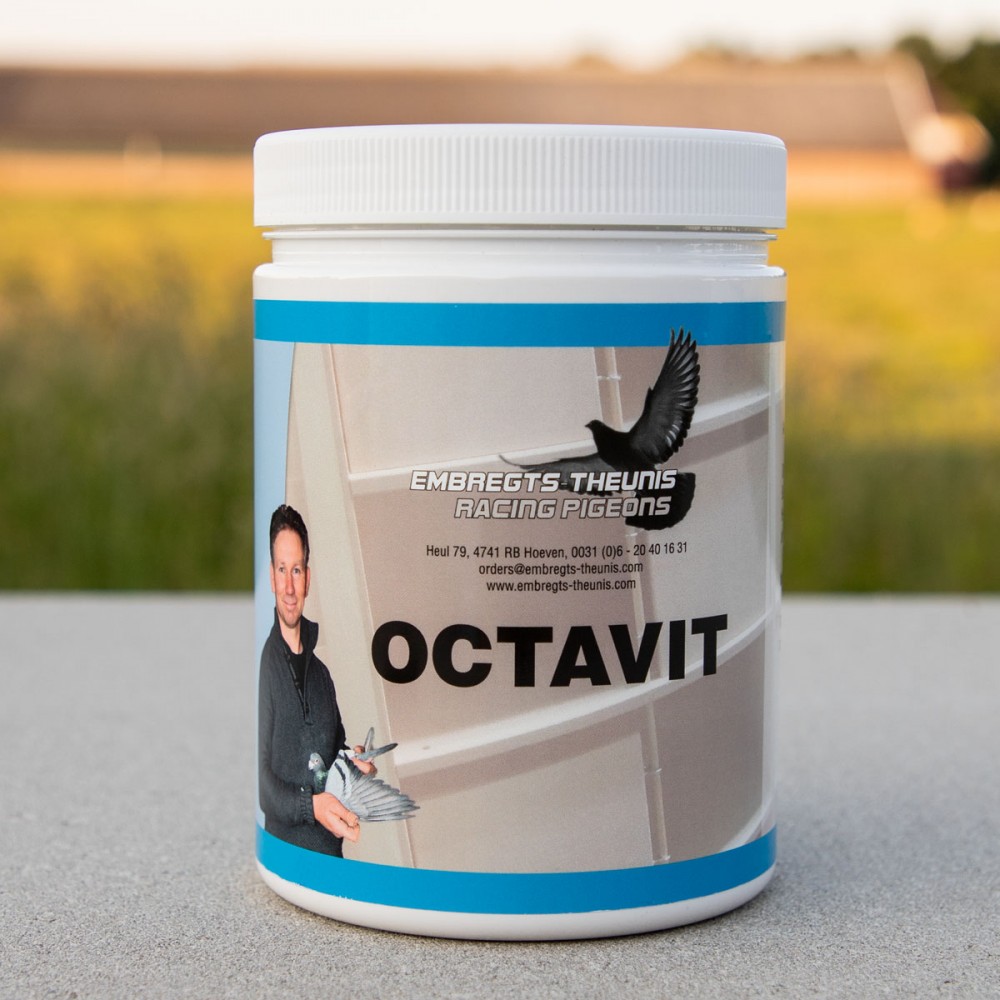 Embregts-Theunis Octavit bevat octacosanol, vitaminen, mineralen en grondstoffen die de conditie en vliegprestaties van je duiven verbeteren.