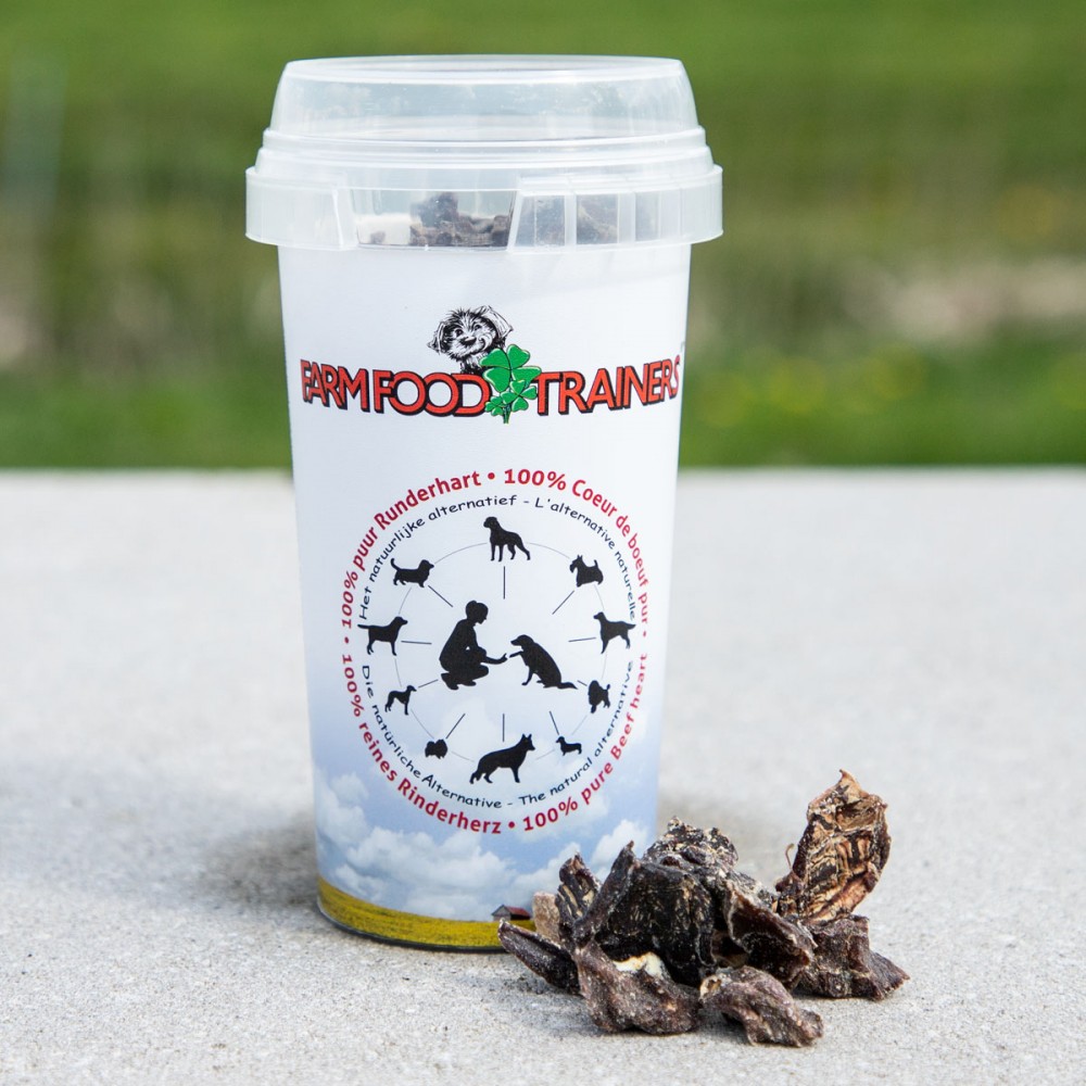 Deze stukjes 100% gedroogd runderhart van Farmfood zijn een ideale gezonde tractatie.