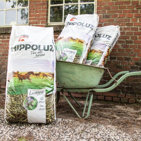 Voor oudere paarden is de hippoluz luzerne ook erg geschikt omdat het ze beter op gewicht houdt en makkelijk te kauwen is.