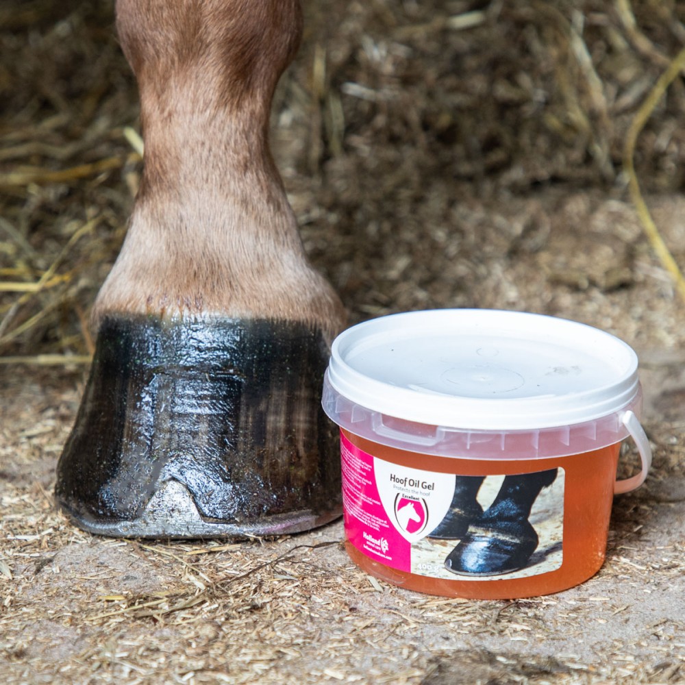 Hoof Oil Gel voor paarden beschermt de hoeven tegen hoornkloven en afsplinteren.