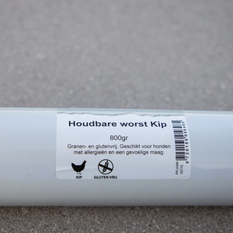 De houdbare worst in de smaak kip is geschikt om af en toe een maaltijd mee te vervangen of je kunt de worst in plakken snijden om te geven als traktatie.