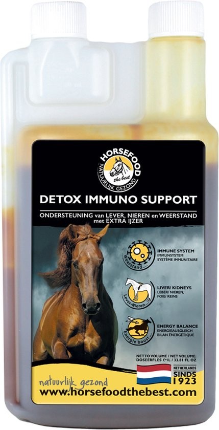 De Horsefood Detox Immuno Support is ter ondersteuning van de lever, nieren en weerstand.