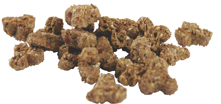 45% lijnzaad, vitamine A, D en E, omega 3 vetzuren.