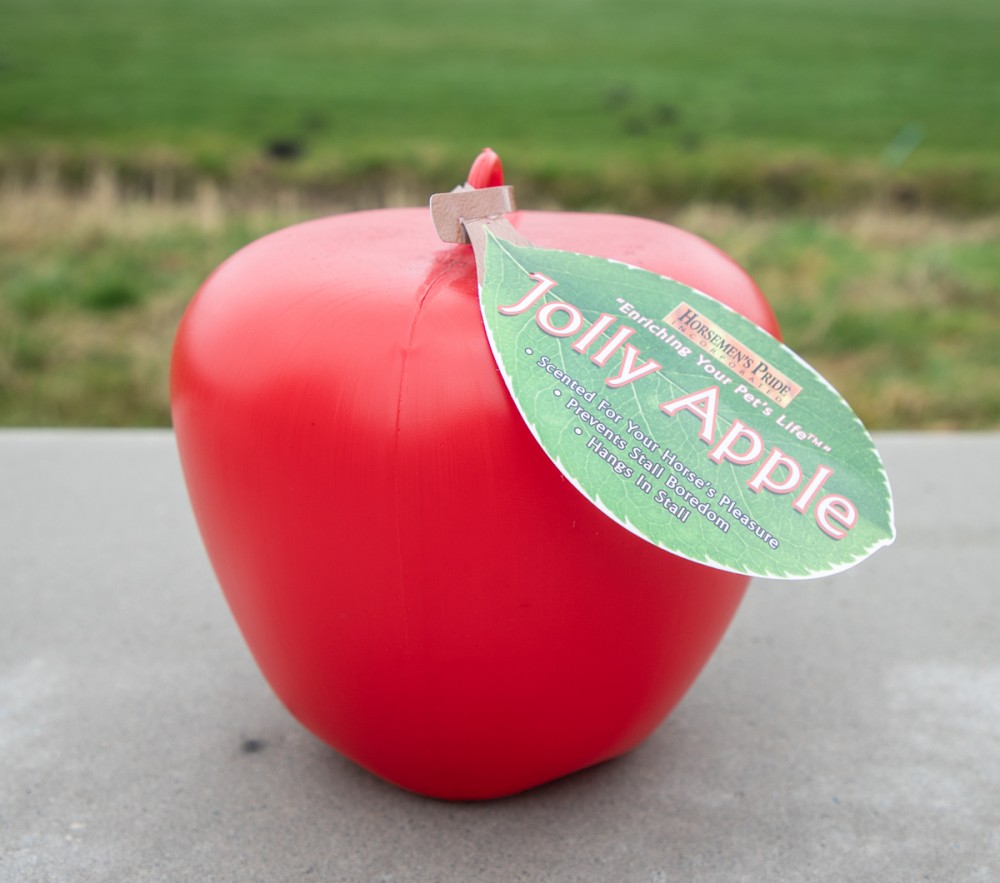 Appelspeeltje met appelgeur bevestigd aan een touw.