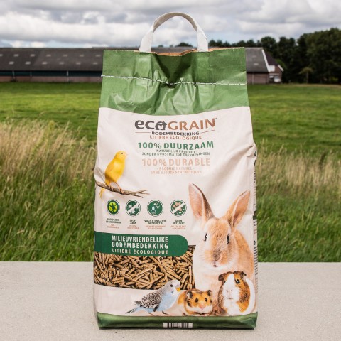 Deze kattenbakvulling van EcoGrain is gemaakt van een100% natuurlijk product.