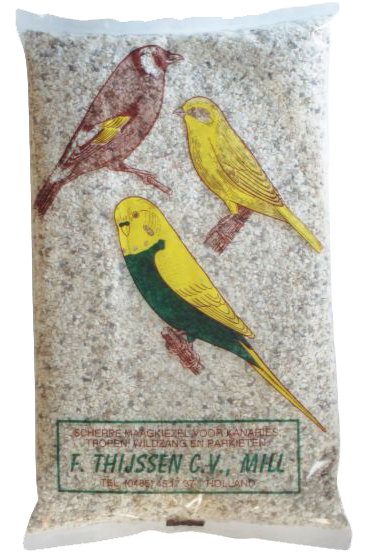 De kiezel is fijn en speciaal voor kleinere vogels.
