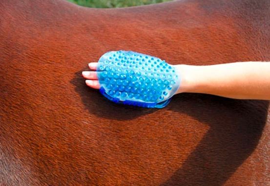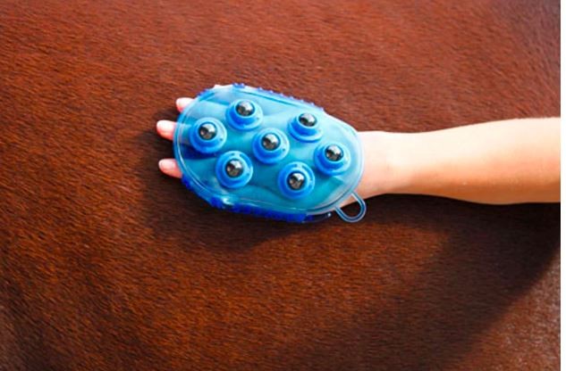 Door deze over de huid van het paard te bewegen zal het een zeer aangenaam masserend effect hebben.