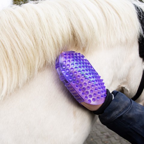 Door deze over de huid van het paard te bewegen zal het een zeer aangenaam masserend effect hebben.