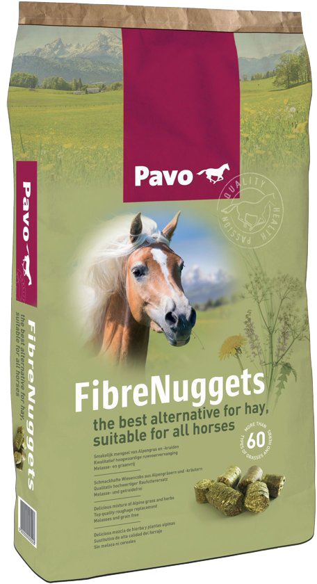 Een heel goed alternatief voor ruwvoer is Pavo FibreNuggets.