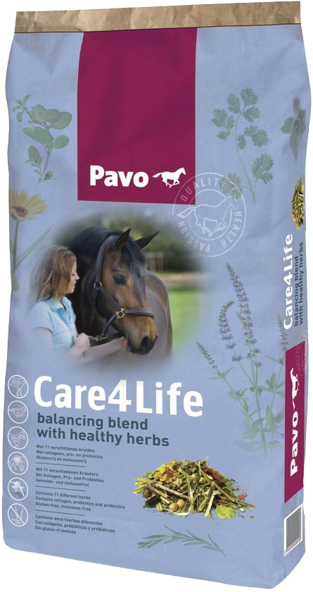 Pavo Care4Life is een gezonde graanvrije, melassevrije en havervrije muesli die alle ingredienten bevat om je paard gezond te houden.