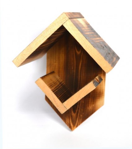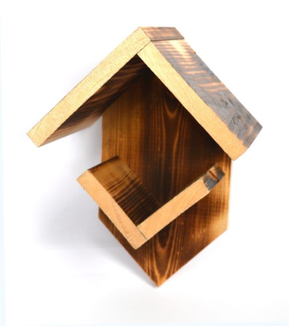 Deze voordelige pindakaaspot houder is gemaakt van vuren hout.