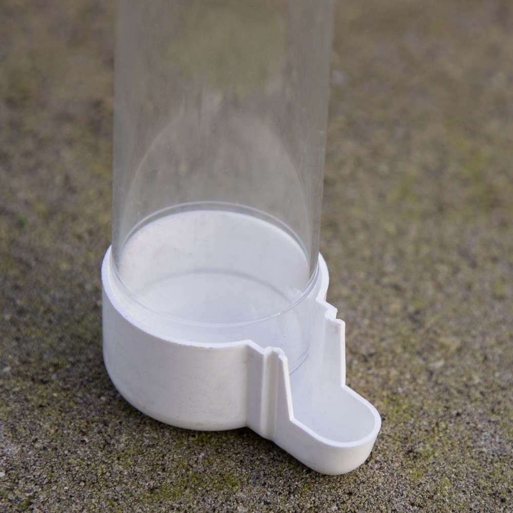 Dit fonteintje kan je tussen de verticale spijlen aan de buitenkant van de kooi klemmen.