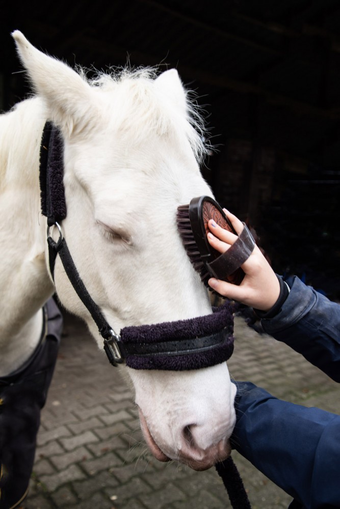 Verwijderd stof uit de vacht van je paard of pony.