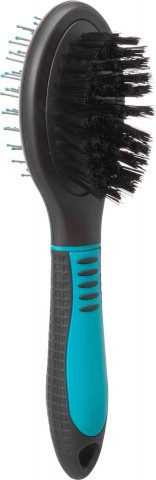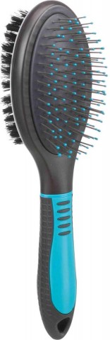 Dubbelzijdige borstel met metalen pennen met beschermende dopjes aan de ene kant en een gewone borstel aan de andere kant.