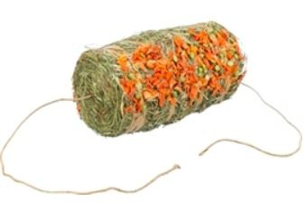 Dit kleine hooibaaltje bestaat uit heerlijk vers hooi met stukjes erwt en wortel.