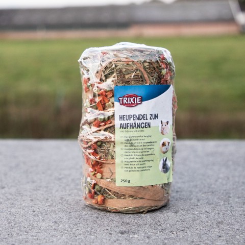 Deze leuke hooipendel is een gezonde snack voor jouw knaagdier die de tandverzorging ondersteunt en verveling tegengaat.