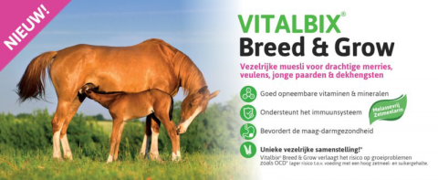 Vitalbix Breed & Grow is een vezelrijke muesli die speciaal ontwikkeld is voor drachtige merries, veulens, jonge paarden ( tot ongeveer 3 jaar ) en dekhengsten.