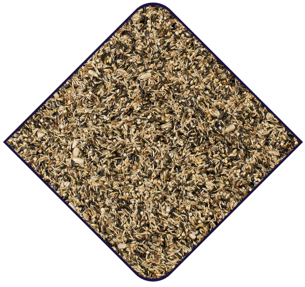 Nigerzaad, graszaad, wit slazaad, bruin perillazaad, chichoreizaad, teunisbloemzaad, kanariezaad, sesamzaad, klaverzaad, lijnzaad, blaumaanzaad, gepelde zonnebloempitten, wortelzaad, spinaziezaad, wit perillazaad, marien distelzaad