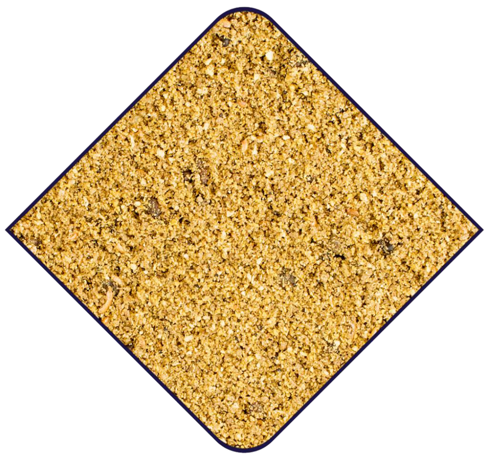 Bakkerijproducten, oliën en vetten, suikers, plantaardige bijproducten, vruchten (rozijnen, jeneverbes, mango) zaden (raapzaad, koolzaad) mineralen, plantaardige eiwitextracten, schaal- en weekdieren (garnalen), vlees en dierlijke bijproducten (meelwormen), gist