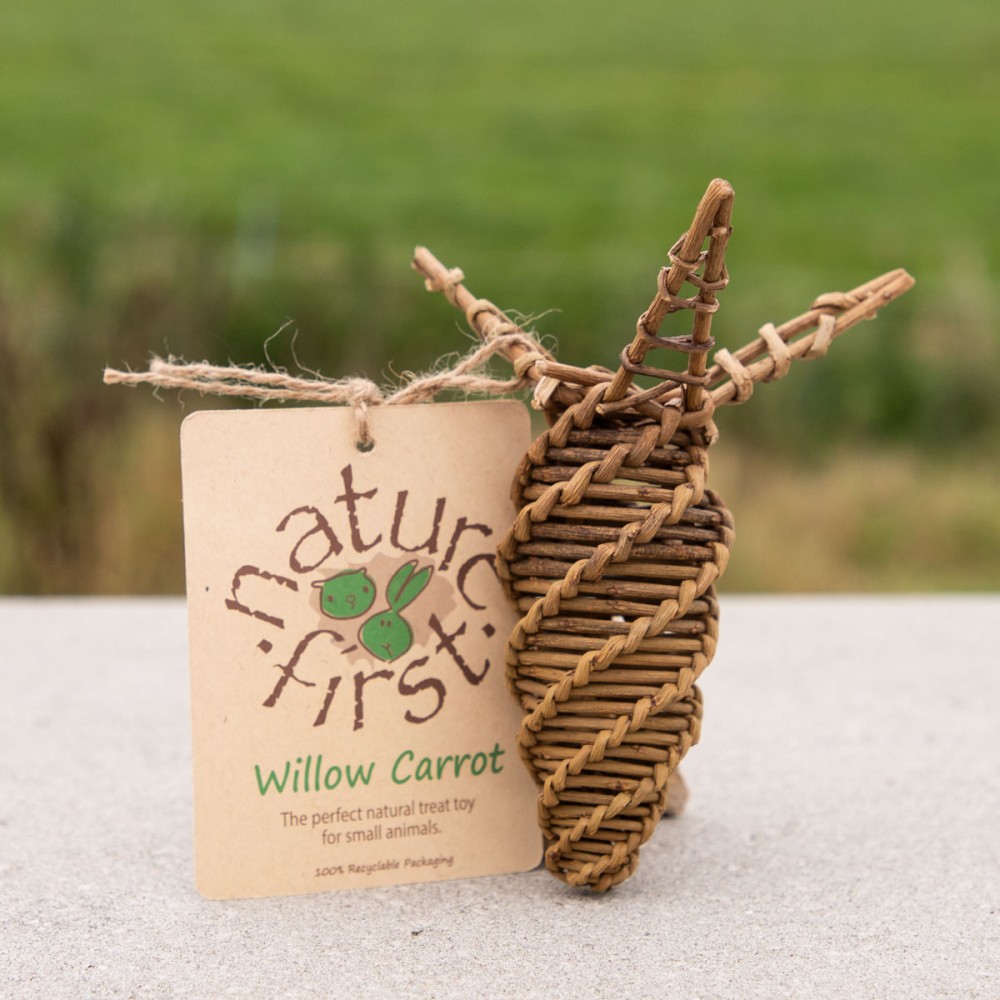 Deze wortel van Nature First in de vorm van een wortel is gemaakt van 100% wilgenhout.